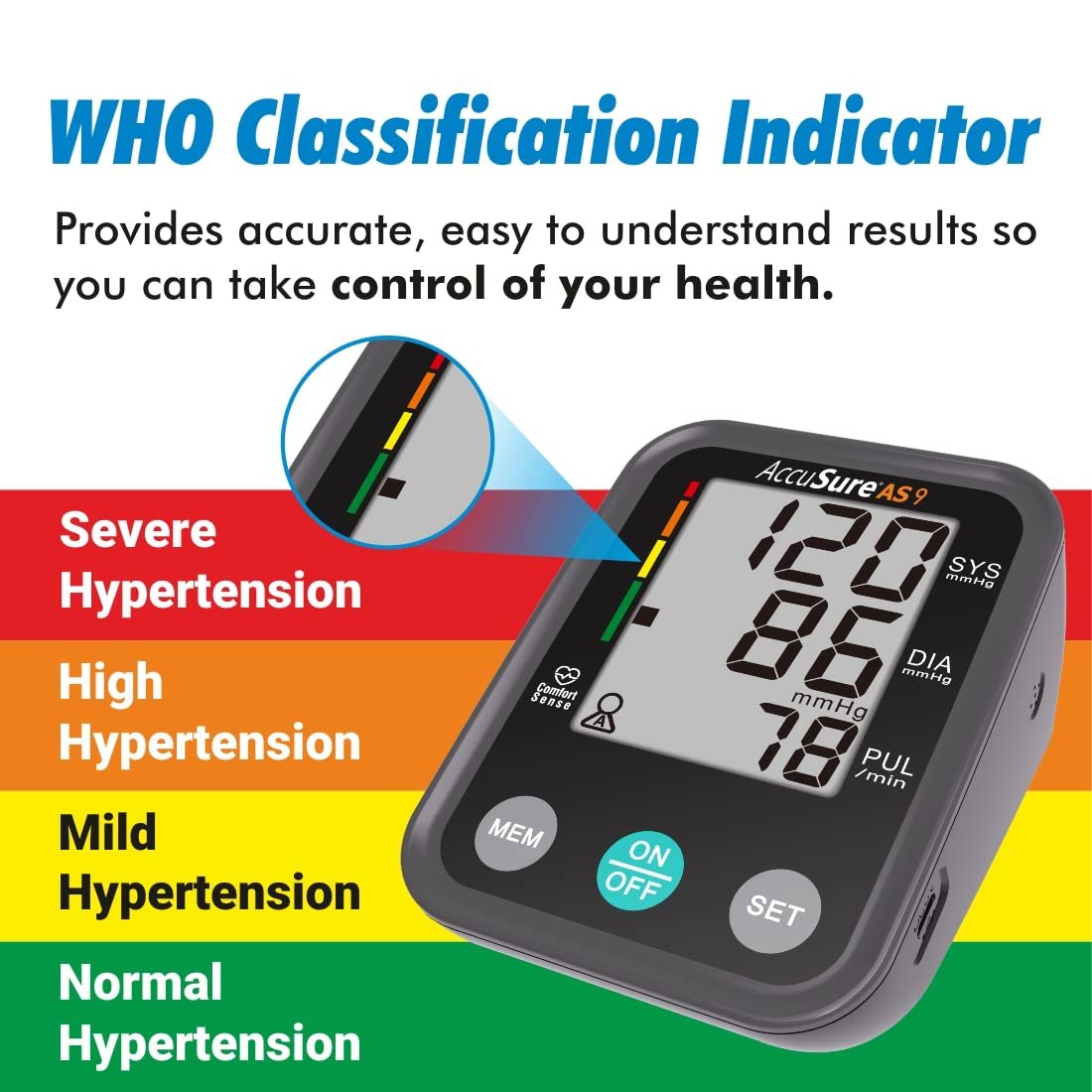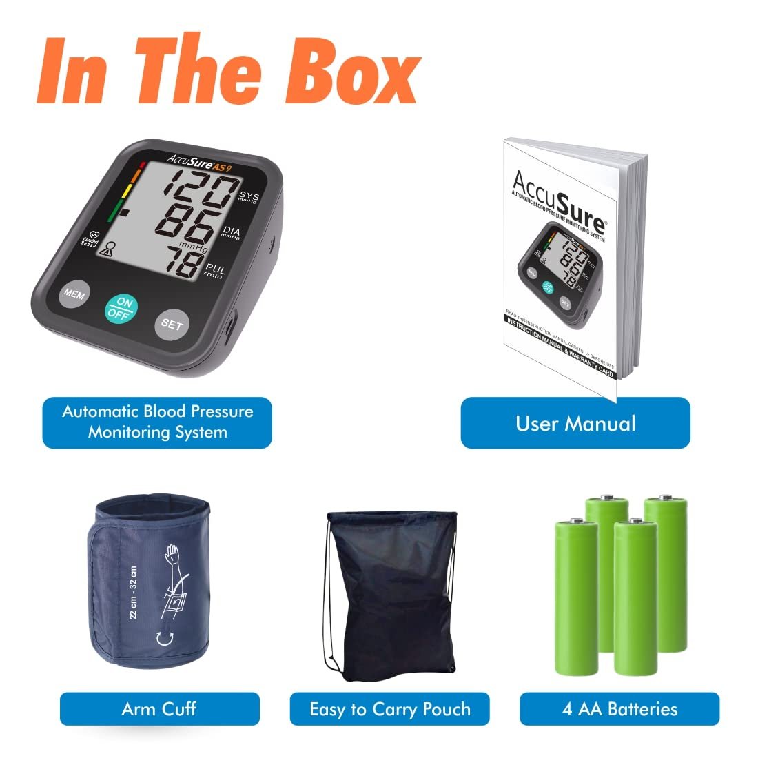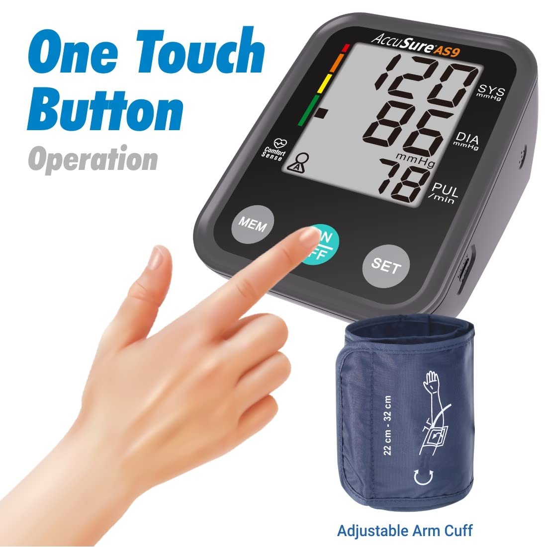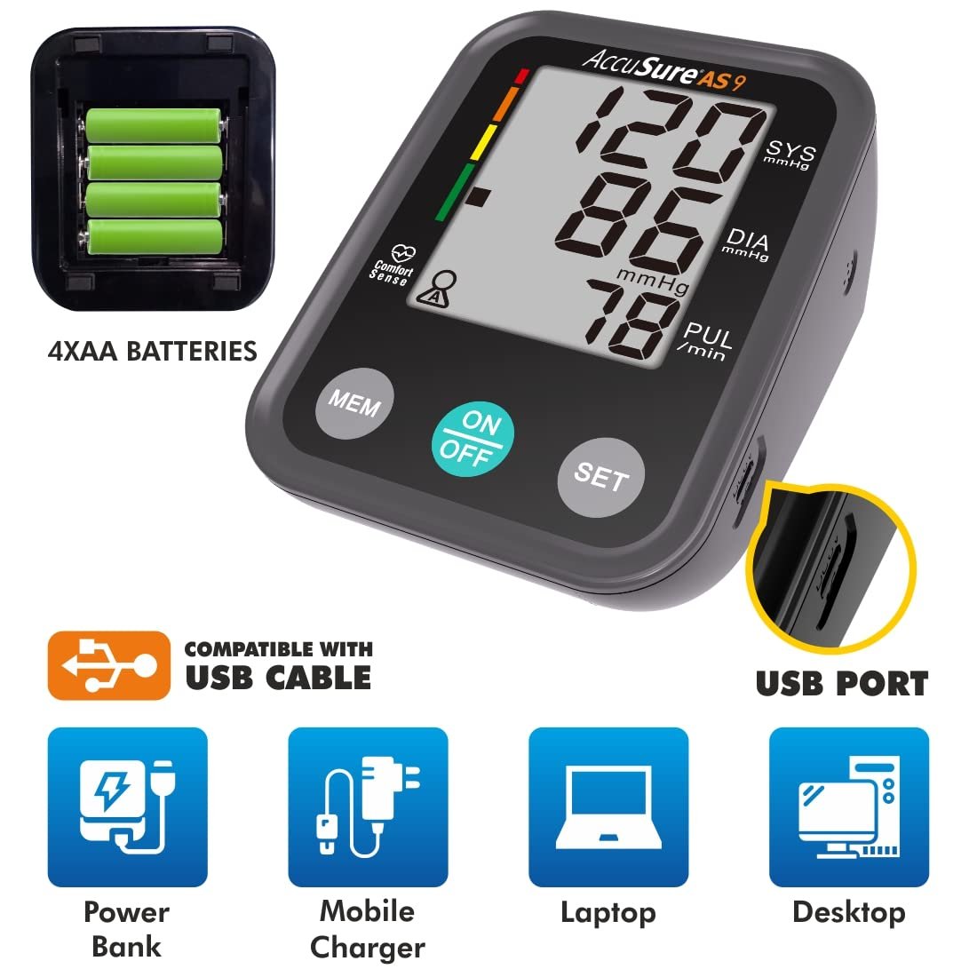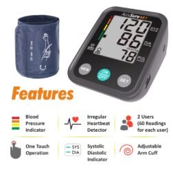 AccuSure Blood Pressure Monitor Fully Automatic Digital Large Display and Adjustable Arm-Cuff comes with Micro USB Port and 4 Years Brand Warranty