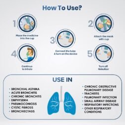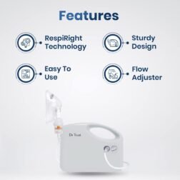- Flow adjuster- The device comes with a flow adjuster which allows the user to adjust the airflow according to one’s comfort. The user can adjust level of nebulisation between 0.5-5 ml/min